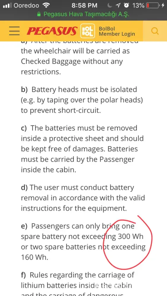 Pegasus refused to load my lithium battery along with me on flight when I was traveling from Qatar to Turkey