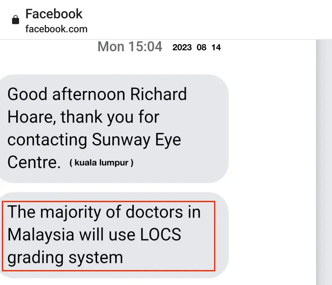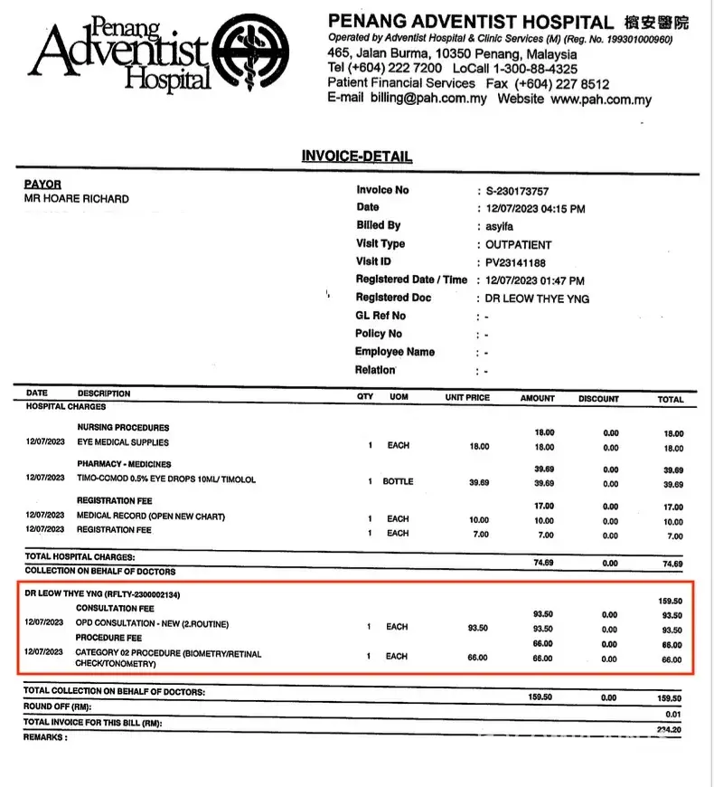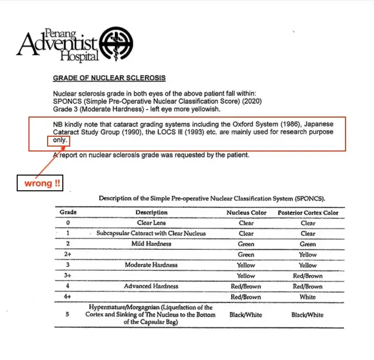 e. invoice was for 2 eye examination, but adventist refuse to give either orally or written information on cataract grading i.e. no/nc.