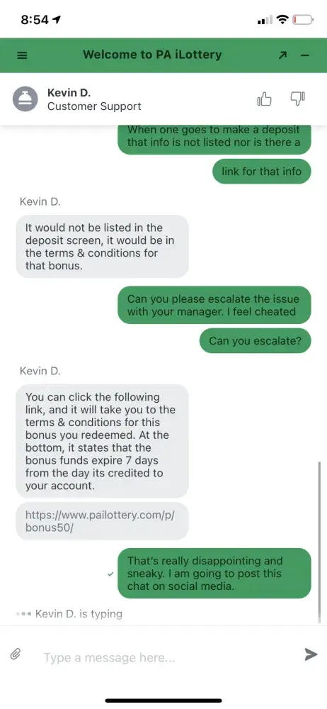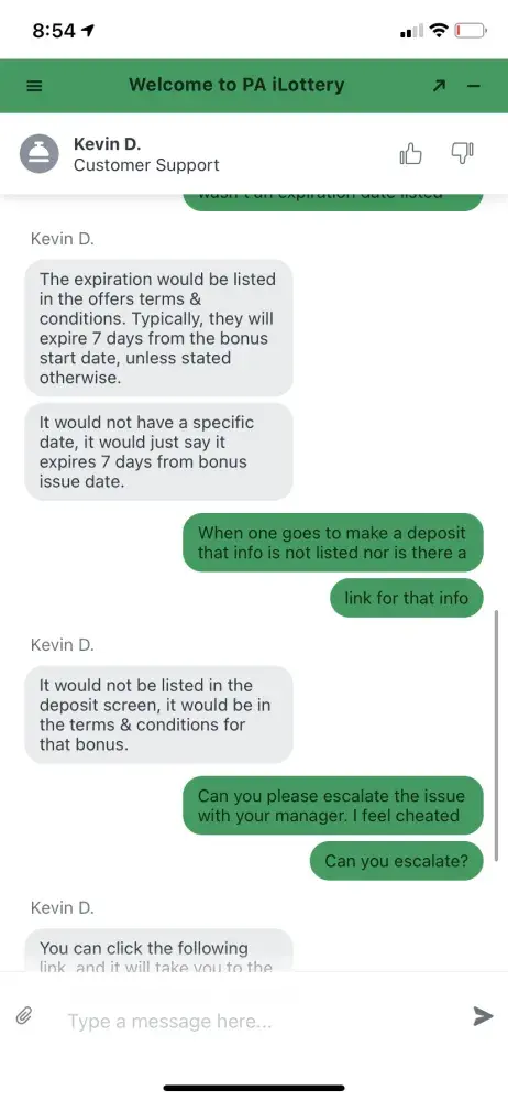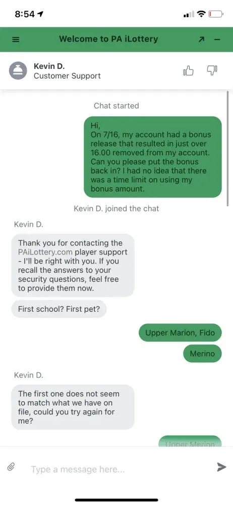 On 7/16 the PA withdrew $16 bonus money from my account. When I deposited my money the app did not state a specific expiration date or that the bonus was subject to an expiration. When I had a chat session Kevin D I explained what had happened and the lack of notification and he shared an URL with a generic policy and denied my request. Such expiration should be list upfront like that are in coupons. I feel like the PA lotto leadership stole $16 bucks from me and hid behind some deep hidden policy. I have been a long time customer, and you made feel feel that cheated. Pa lotto leadership lacks perspective and their support team reflects it. I hope they enjoy my $16.