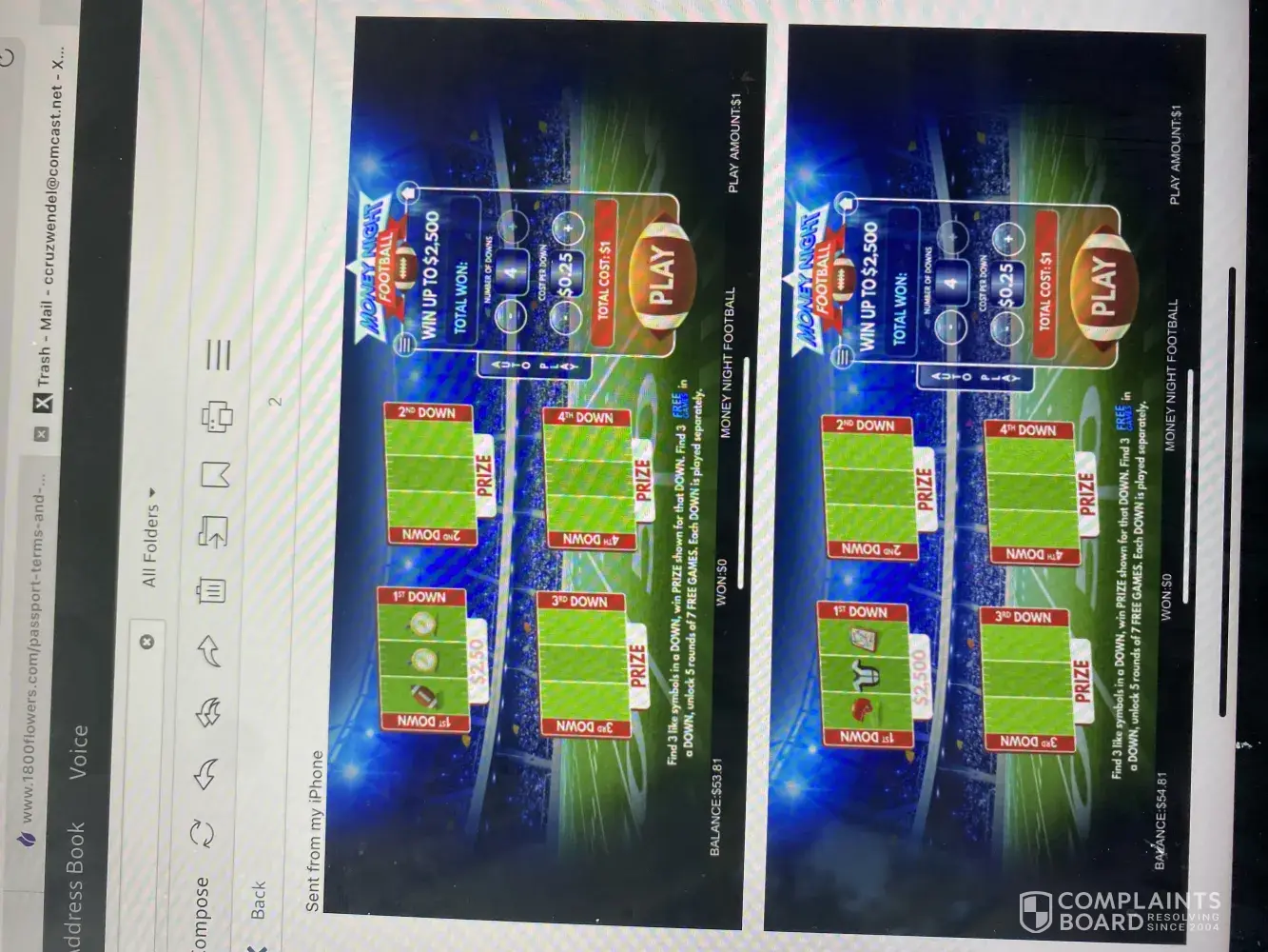 On March 7, 2021 I was playing the Monday night football game. After playing for a bit the machine got stuck and despite me playing $.25 per down and playing 4 downs at a time for the total cost of a dollar per game it only revealed the first down. Did not reveal the other three downs and it happened like three or four times. I reported this first by email and since then have called probably four or five times since it happened. The first couple times that I called I was told it takes a while someone was looking into it. Then the last few times I called I was told that the issue was resolved and I was informed however I was never informed in any type of communication. I keep getting the runaround and being told someone will get back to me but as of yet no one has including today again when I called I was just told that I need to put in another complaint.