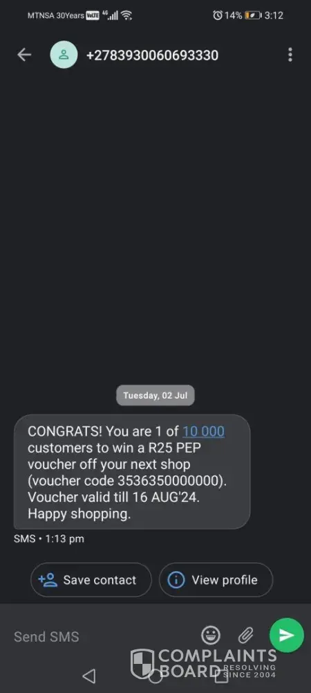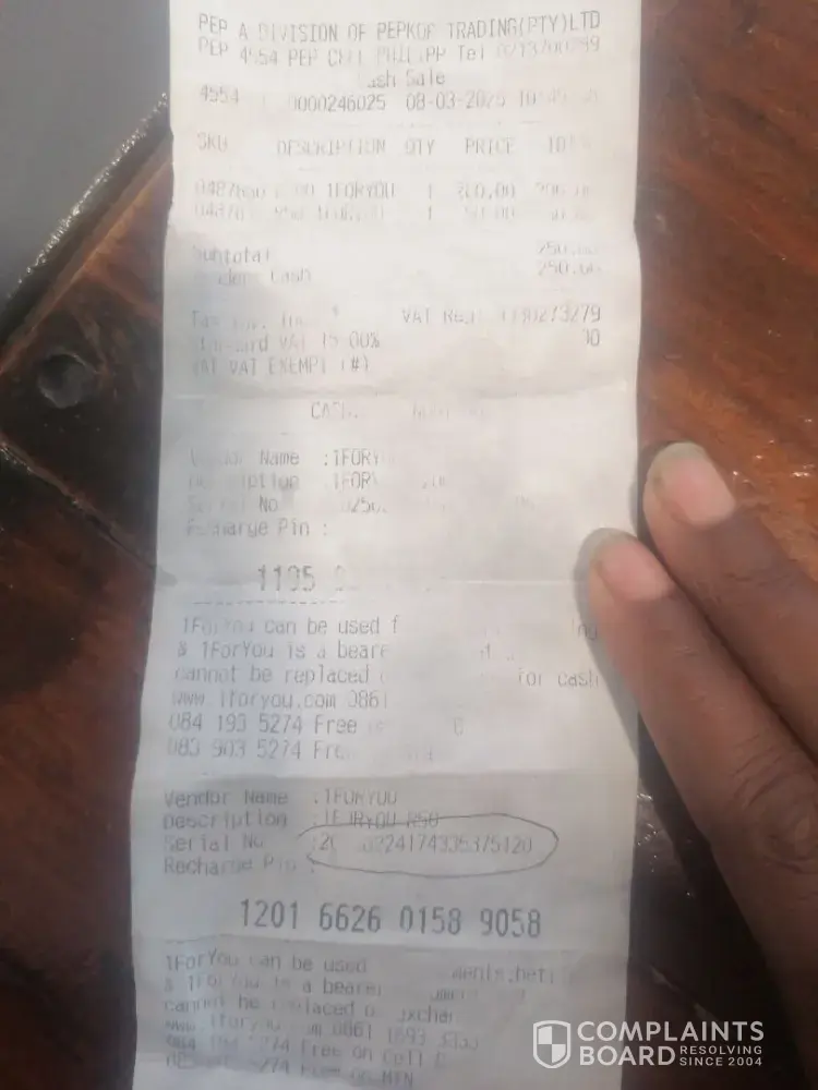 Dumela ausi makoma le batheletsi 🙠I am writing to express my frustration and disappointment with a recent transaction at PEP Cell, located within Mams Mall. On 05 March 2023, I attempted to send R2000 to a recipient in Limpopo using the money transfer service. The recipient contacted me, stating they received a voucher instead of the money. They were...