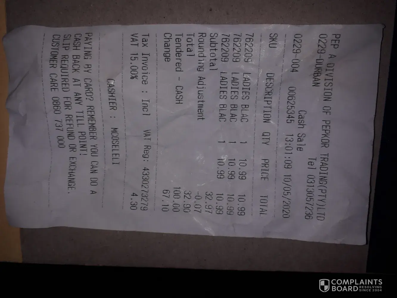 Hi, my name is sbongile on 26 of march 2020 I bought my kids pjs at pep store polokwane and I found out that for my son it was small and I said I will change it after lockdown because it was already late To my disappointment when I was about to change it the cashier said we are not exchanging and no refund I had to buy another one because my son really...