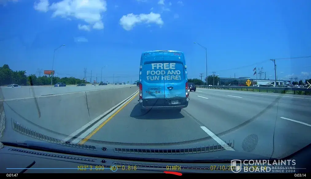 pepsico vehicle driven unsafely - 91mph!!