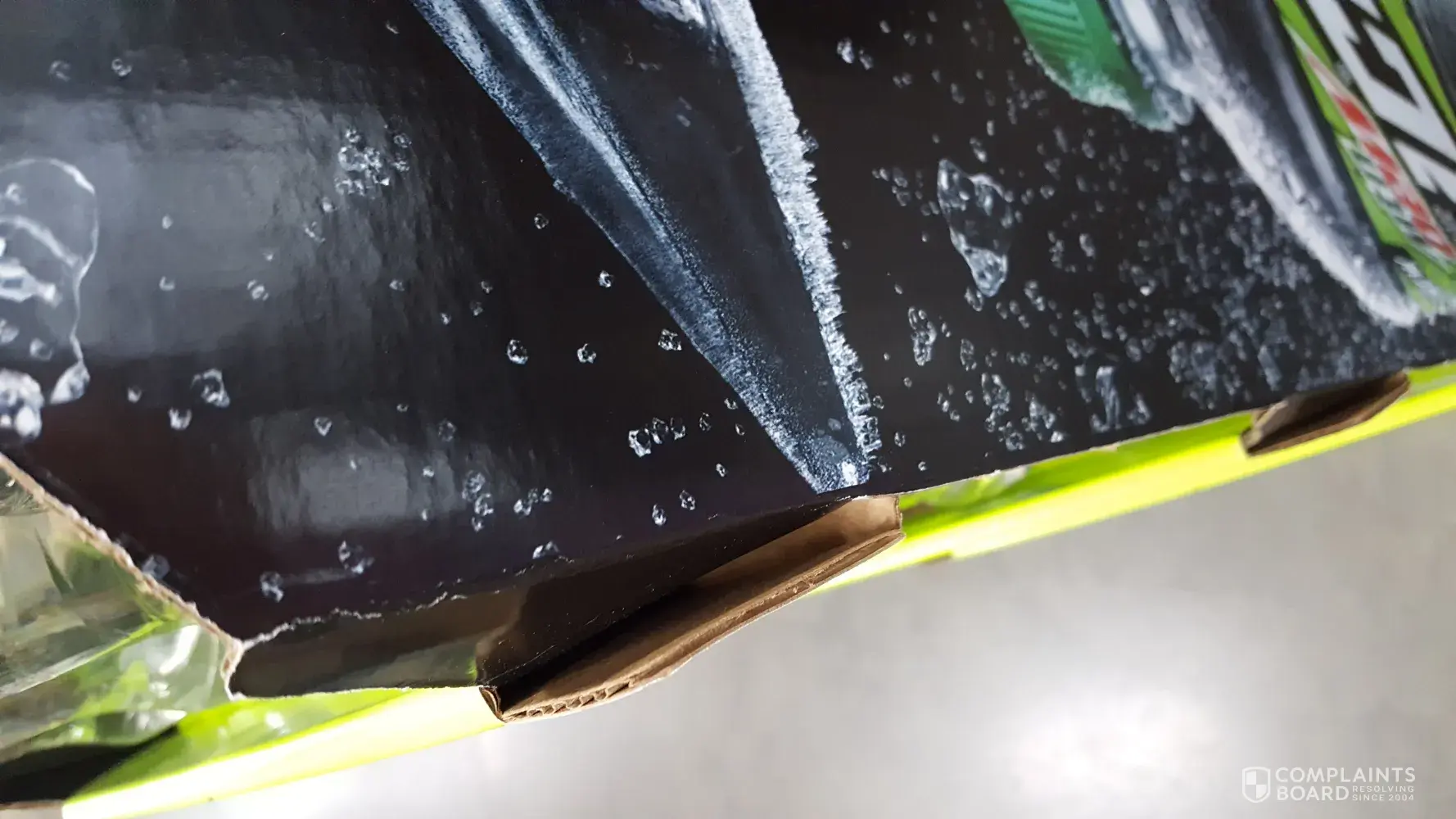 Upon opening each of the cases we came to find several cans within each case were light and the cans were sticky. When opening the cans in question (2-3 per case), there was no carbonation in the cans and the soda was completely flat and blah. No carbonation or syrup / flavoring.