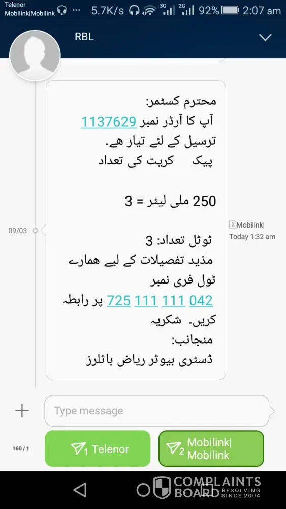 I am attaching pictures of my empty chillers with no supply, manual invoice & messages received by rbl i. E. Fake orders.