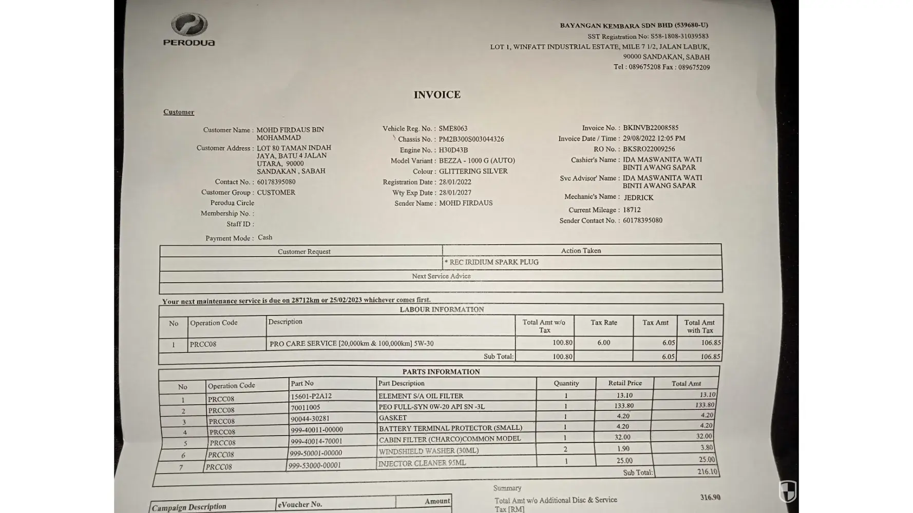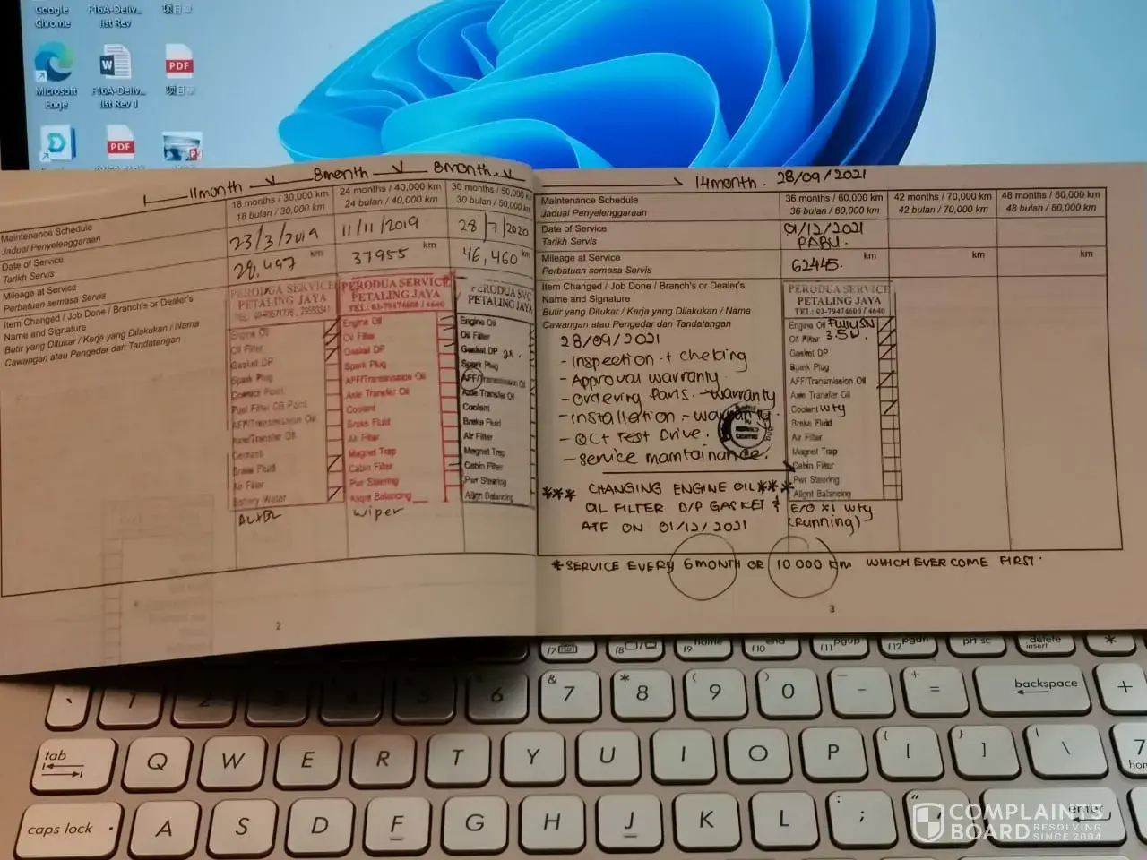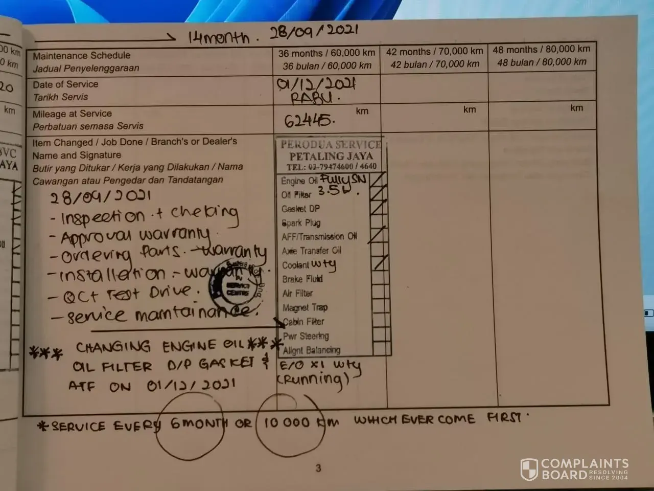 Selepas service pihak perodua tulis 28,000km next service..