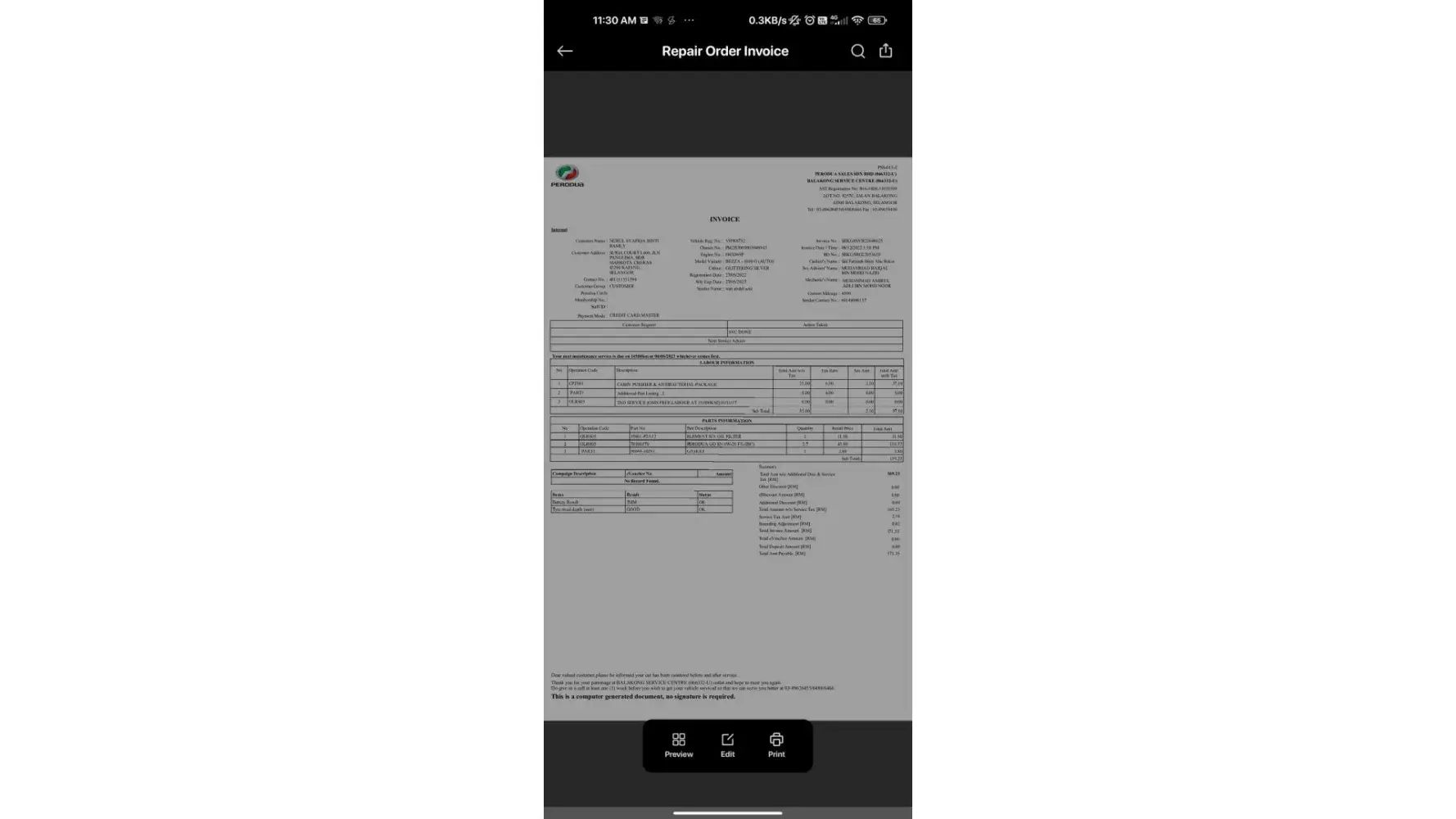 I urge someone from the SENIOR MANAGEMENT of PERODUA will pay full attention on my problem above.