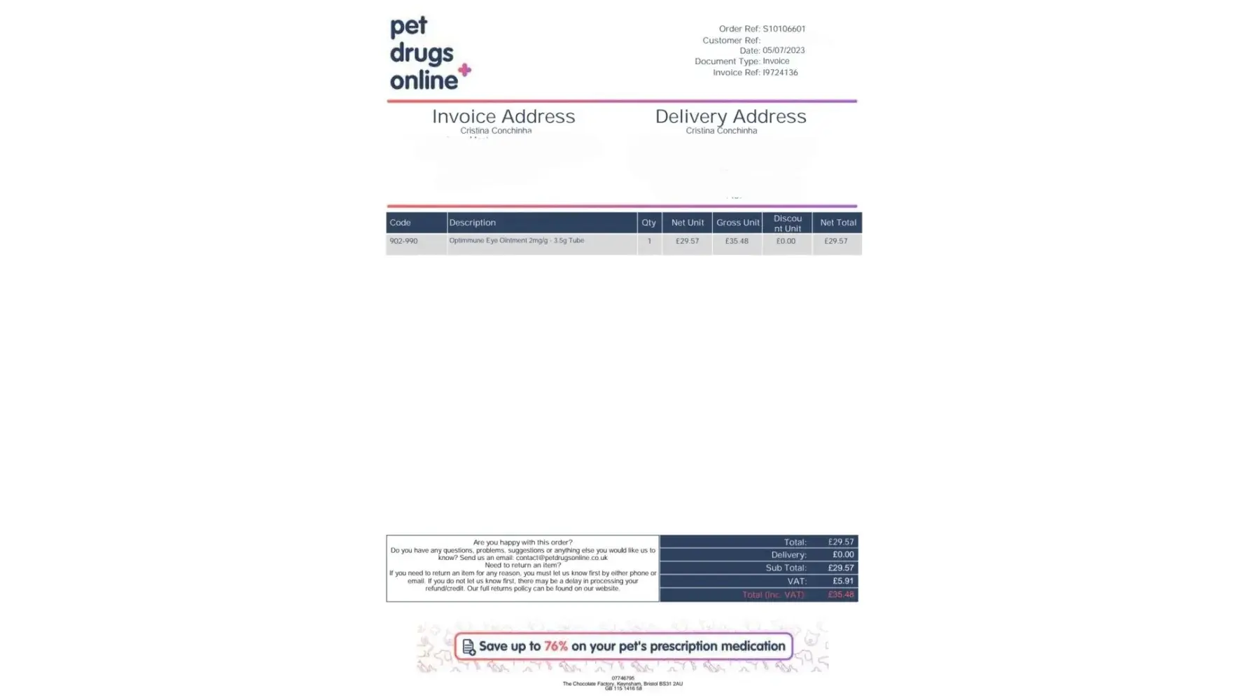 Pet Drugs Online emailscontact@petdrugsonline.co.uk94%Confidence score: 94%Supportpeople@petdrugsonline.co.uk75%Confidence score: 75%