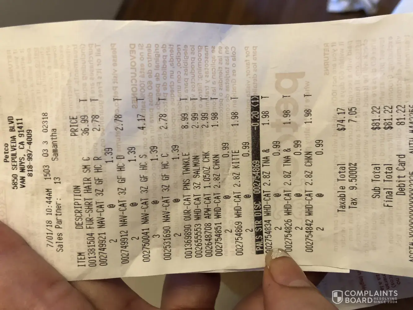 I recently adopted 2 kittens from a shelter and the day i went to pick them up from the shelter, i stopped by and bought a couple of items at your Van Nuys location Petco store #1503, I had a great experience the gentleman at the counter was very friendly and helpful- that day was June 9th. Being overly eager I had bought way more than the kittens needed because i wasn't sure what they would like so i bought two of everything so that they each could have their own if they wanted. A lot of the things i bought never even left the trunk of my car, one of which was a cat bed i bought from your store. I returned to the store today (July 1st 2018) to return a completely new with all the tags & never used pet bed and since i had a good experience last time I also decided to buy cat food and toys as well. When i entered the store the sales associate that greeted me was a young lady with short dyed hair and tattoos- she was extremely nice and helpful, i told her i wanted to return an item but the reciept that i brought with me was partially illegible because some lotion had spilled on it and apparently erased the ink - she said it's not a problem becuase the bar code at the bottom of the reciept was intact and that scanning that is one way they can use to access the information. So i happily went to shop for some wet food and toys, I usually buy higher end brands like Orijen dry cat food and Ziwi Peak dry and wet cat food, but i thought i would try out some of your brands after pickin out a couple of items i headed to the counter to pay and also return the cat bed. It was a different sales person - she was extremely rude and obviously didn't know what she was doing becuase she said that she can't read the reciept so i can't return that item, I told her that her coworker said to scan the bar code, and she said oh ok and scanned the bar code then she informed me she needed her managers approval which was completely understandable. She asked the manager "Daniela" for assistance, the manager approached the counter and after the sales girl explained to her the situation she said she would have to go to the computers in the back in order to check the information- which is completely reasonable. It was what immediately followed that I find appalling:
