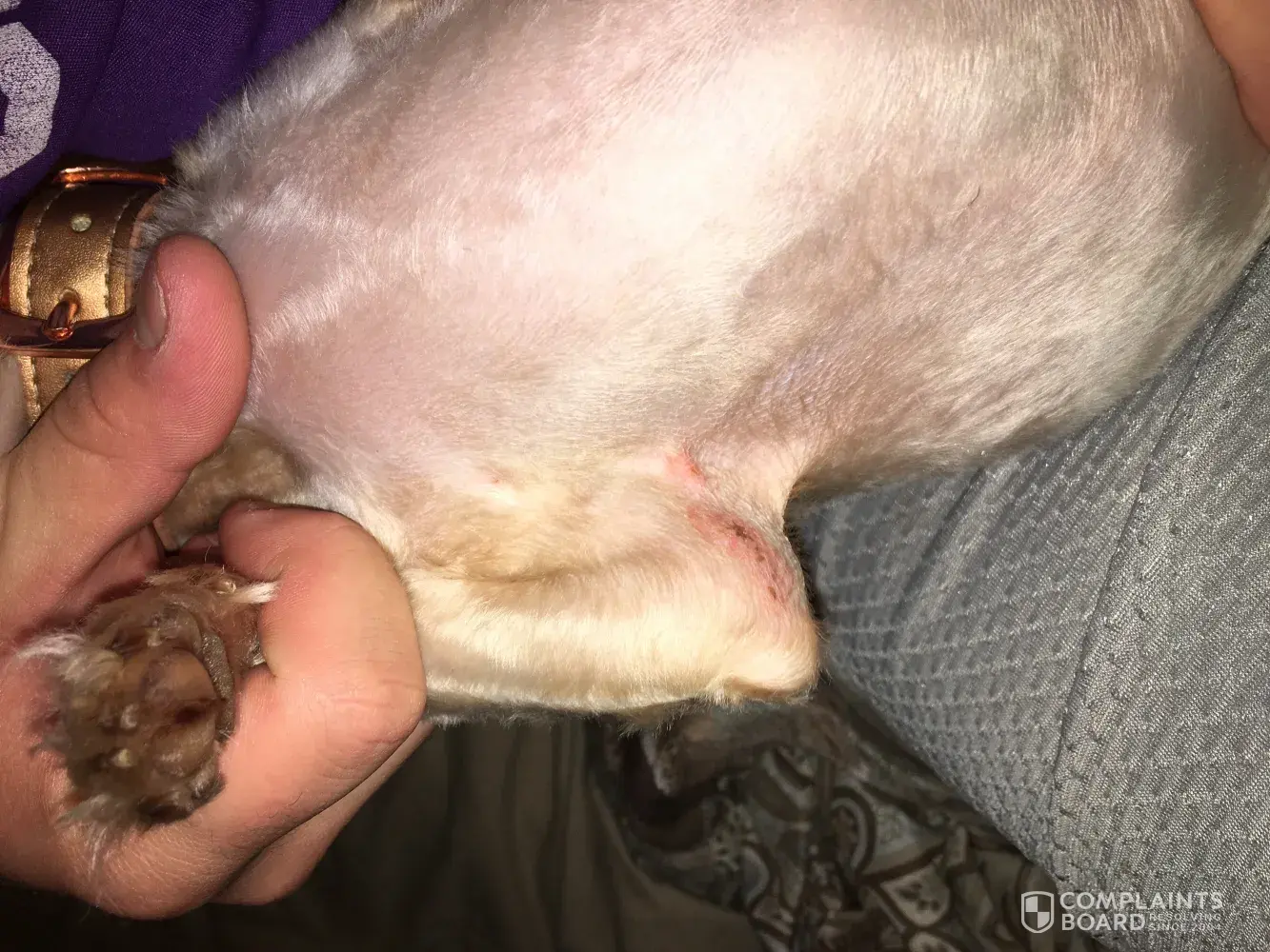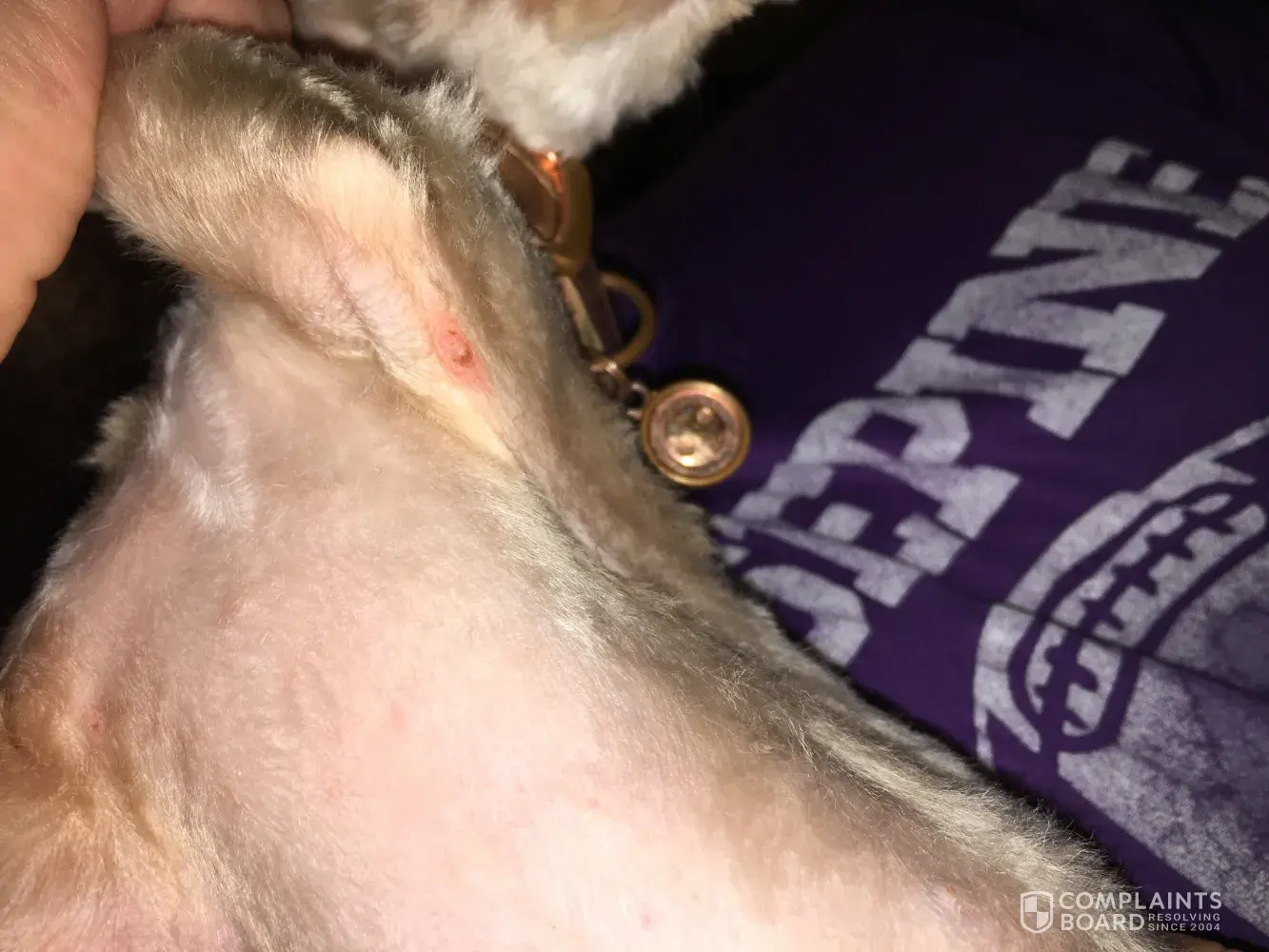 I took my dog into a grooming appointment today. I got a call saying the groomer had to wait to finish her rough cut until another employee came into work. She claimed my dog was squirming around and she was afraid to cut her. I said that was fine and waited for her to finish. Once I picked her up I noticed her biting different places and rolling around unlike usual. Upon further inspection I found sever knicks and razor burns all over her body. I understand she might have been squirming but I paid over $70 to put my baby in pain. I'm infuriated.