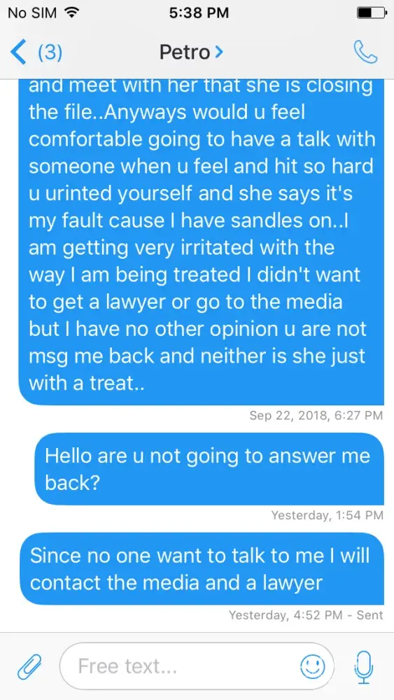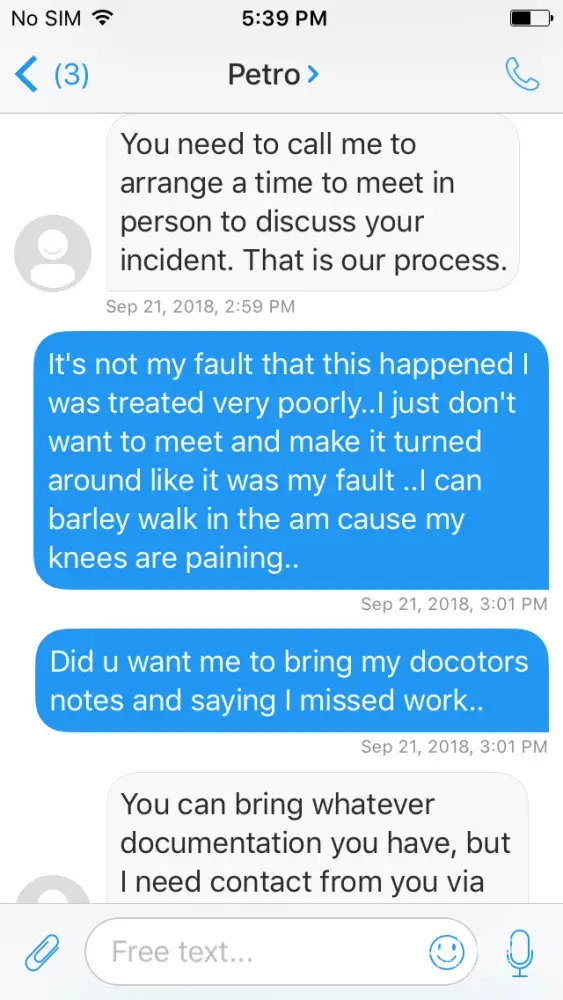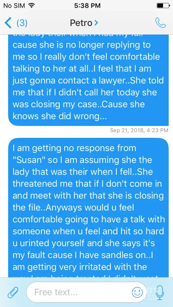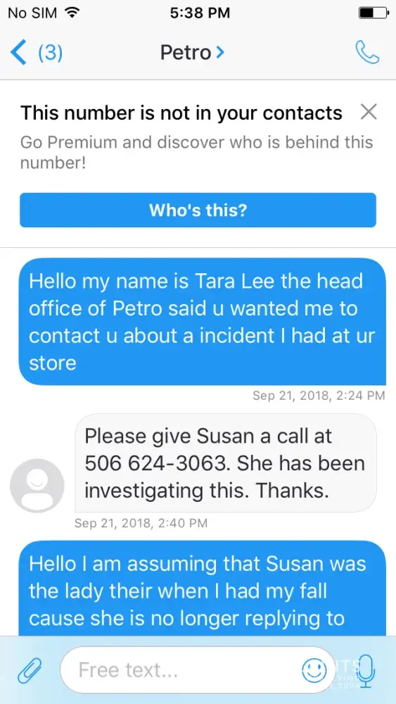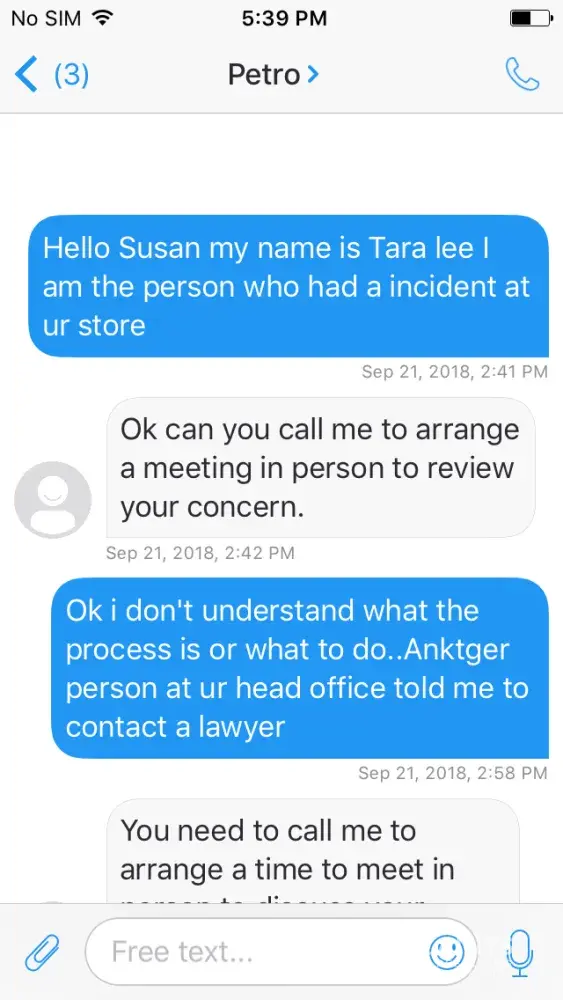 Hello my name is Tara and I really need your help On sept 11 at apx 12 noon I went to the Petro Canada on king George hwy.I pumped gas and went in and went to go to the cooler to get a pop and slipped and fell on water that was on the floor..I smashed both my knees and pee my self I hit so hard..The lady in behind the cash never cane and helped me she stood their and said it was my fault cause I had sandles on and they are not good on them floors..I layed their for a min or 2 and a old man came in cause he seen me fall..Asked if he would call a ambulance I said no..Wabbled to the cash ask for a incident report and walked away..I contacted their head office and they told me the store would get ahold of me..They did and it was the lady was their that day that treated me like garbage wanted me to go meet with her and I didn't feel comfortable so she threatened me and said if I didn't she was closing the case..Now today I got a letter saying that They try to contact a bunch of times which was a lie cause I have no phone only email and when I asked if it was the girl that was their that day she didn't respond...I was treated like dirt please help me..