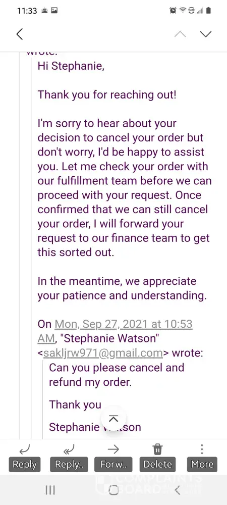 I have tried emailing the several times and have heard nothing back. I have filed a complaint to the BBB as well.