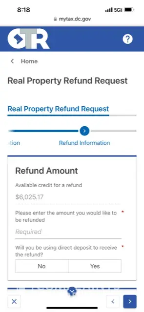 Desired outcome: Request tax refund from the District of Columbia utilizing the DC Tax Office website and my property address. The information is on my portal and they simply need to ask for the refund, as they did previously.