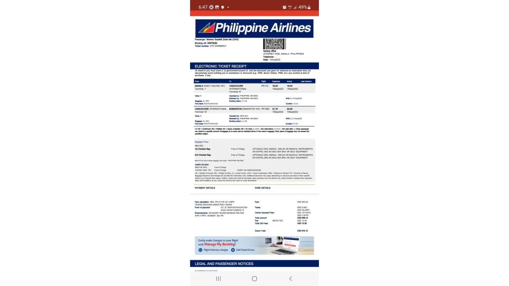 Our flight number PR 116 from Manila to Vancouver was delayed last September 15, 2022 originally 7:10 to 10: 00 pm which we were informed via email. However, we departed almost 11:00 pm and that resulted for us to miss the connecting flight to Edmonton.