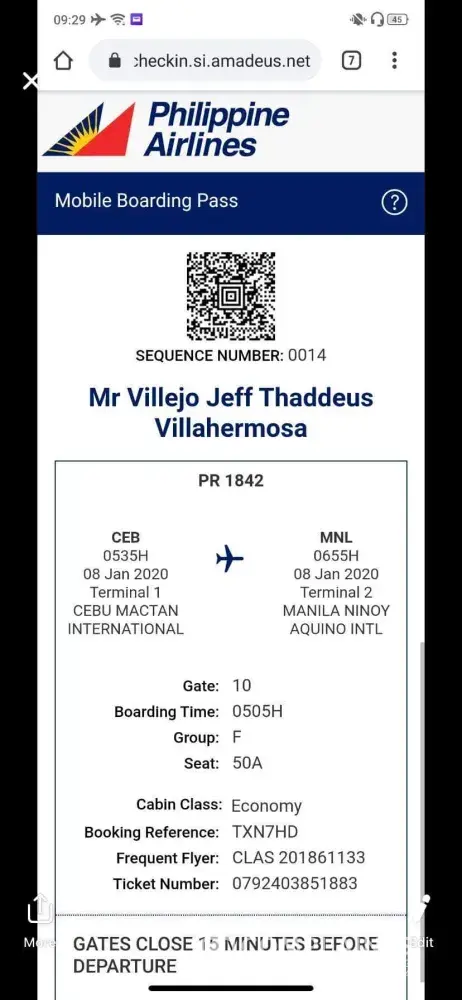 I am Cristy Davila, I am one of your passenger yesterday from Iloilo bound to Manila- connecting flight to Dammam with flight details (reference number WIQLFP, i booked a flight last March 2019, airbus PR 2140 from Iloilo to Manila and Manila to Dammam stating yesterday's date which is October 11, 2019).