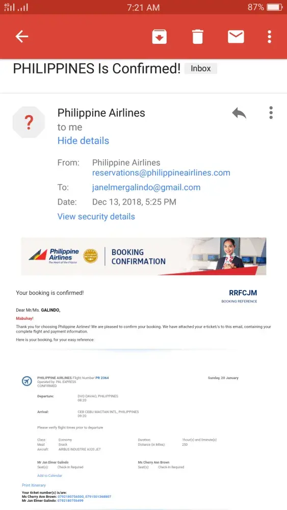 I tried to book a flight in your mobile application last december 13. Your app prompted that my booking was unsuccessful. Because of that I booked a flight with a different airline. After a few minutes, I received an email from pal that my booking was successful. I called your customer service in davao that there is a conflict in your apps bookings. Your agent told me that it is a case of delayed notification.in that case, your app could have prompted for me to wait for a few minutes to have a confirmation not that the booking was unsuccessful. I demand a refund for this because I cant afford to pay for your applications inability to function properly. And it is not right that I have to suffer for your mobile applications service glitch.