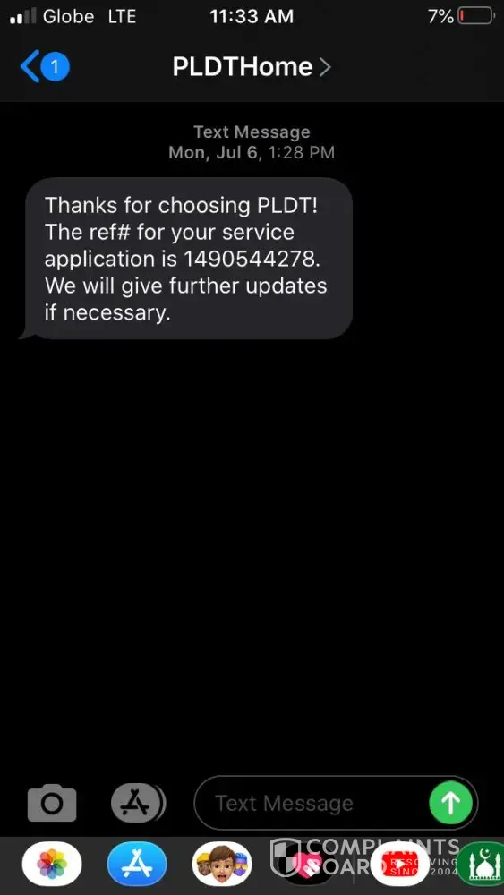 Last June 26, 2020, I went to PLDT located at V. Tiomico St., Brgy Sto Rosario, City of San Fernando, Pamp. and applied for Unli FIBR plan 1599. After processing my application, they told me to wait for 3-5 days for connection, wait for their text and call within given date and got a reference number of service application [protected]. After 1 week, nothing happen!
