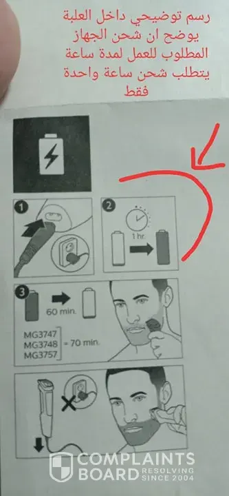 I had been directed to PHILIPS franshise in EGYPT ( Pyraminds EGYPT ) to check the devise, they told me that the machine shall be charged for 16 hour not 1 hour