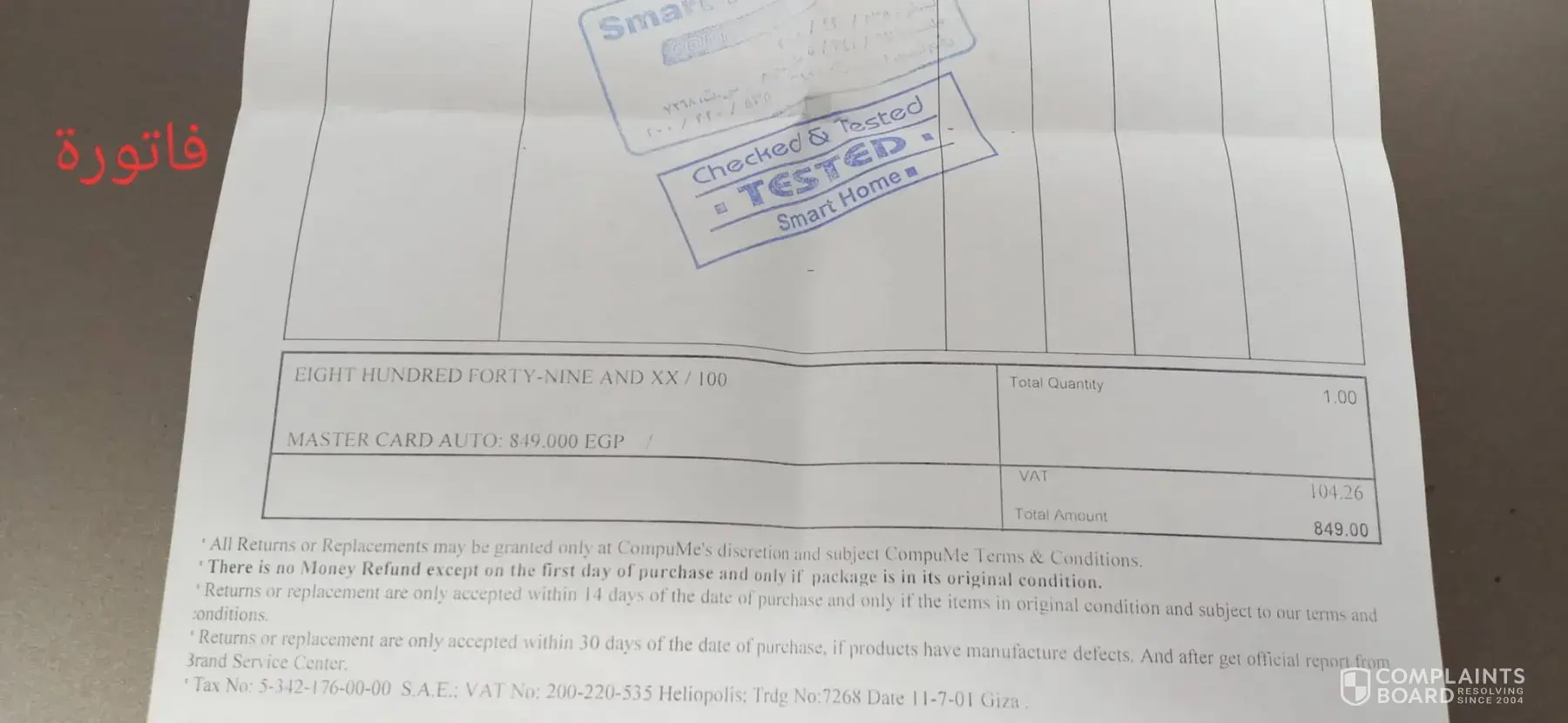 the complaine will be raised to the consumer protection agency here in Egypt and they will check the complain to make sure that my right will be back to me as your franshise refused to return the devise after they checked by themselves that the box include a print for a wrong info about the devise