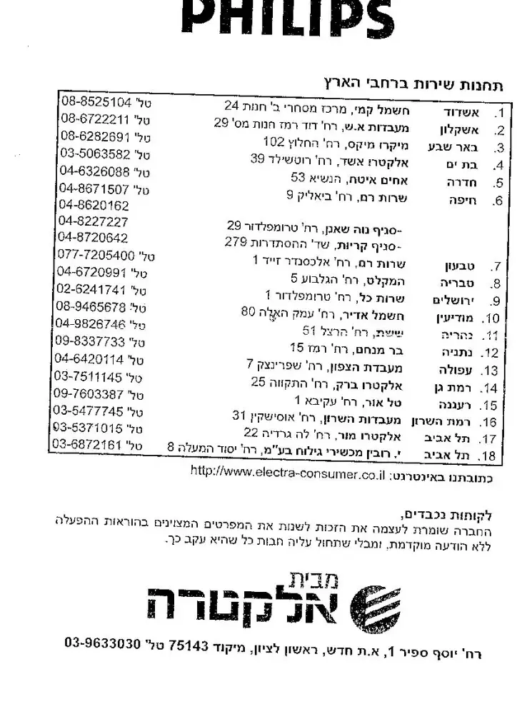 Unfortunately these days one of the blades and the sealing ring came loose. I checked the attached service stations and elected Electro Barak, Ramat Gan. When I contacted them, Danny told me long time no service, but he tried to assist me and returned the items to its holder. When I returned home I discovered It came out again, so I sent a message to Electra and got another service station. This time I wanted to be sure and discovered the telephone number was incorrect. Then I sent another mail and they admitted there was a mistake in the number I received and the details of the shop are correct this time with the correct number. I dialed and was told I have 30 minutes to bring the razor. as Electra only collects them on Sunday once a week. Would I have had the info from the beginning I could have saved a lot of time and aggravation. Unfortunately the lady gave wrong info and told me they did not update recently the list of service station. Misleading and wrong info. I consider this contempt. I keep phone records of the calls and emails which I can forward to you