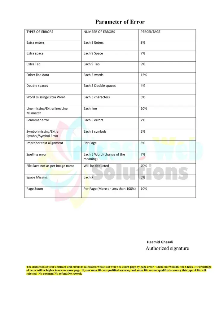 Once you have send 75 USD as Registration Fee, then they will issue you contract letter, in which they will put all terms and conditions like percentage of error etc, but the most imp thing is