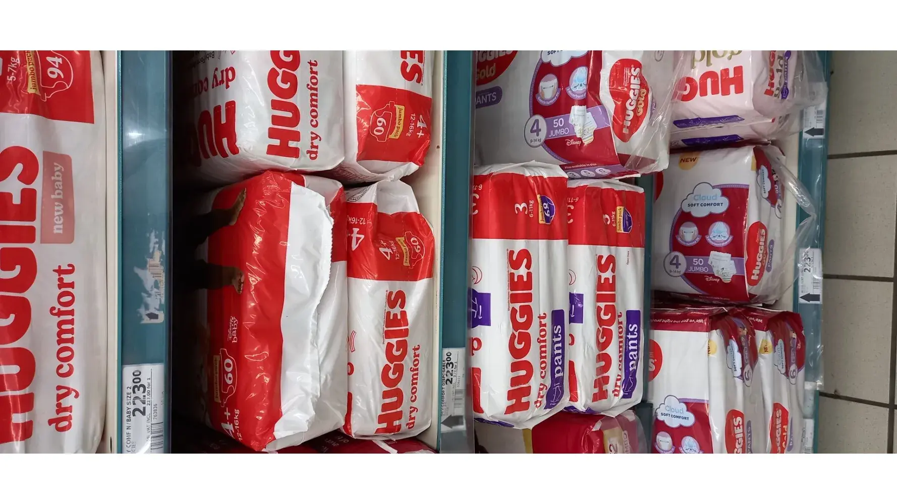 The bags of Huggies dry comfort Pnp have on shelf are: