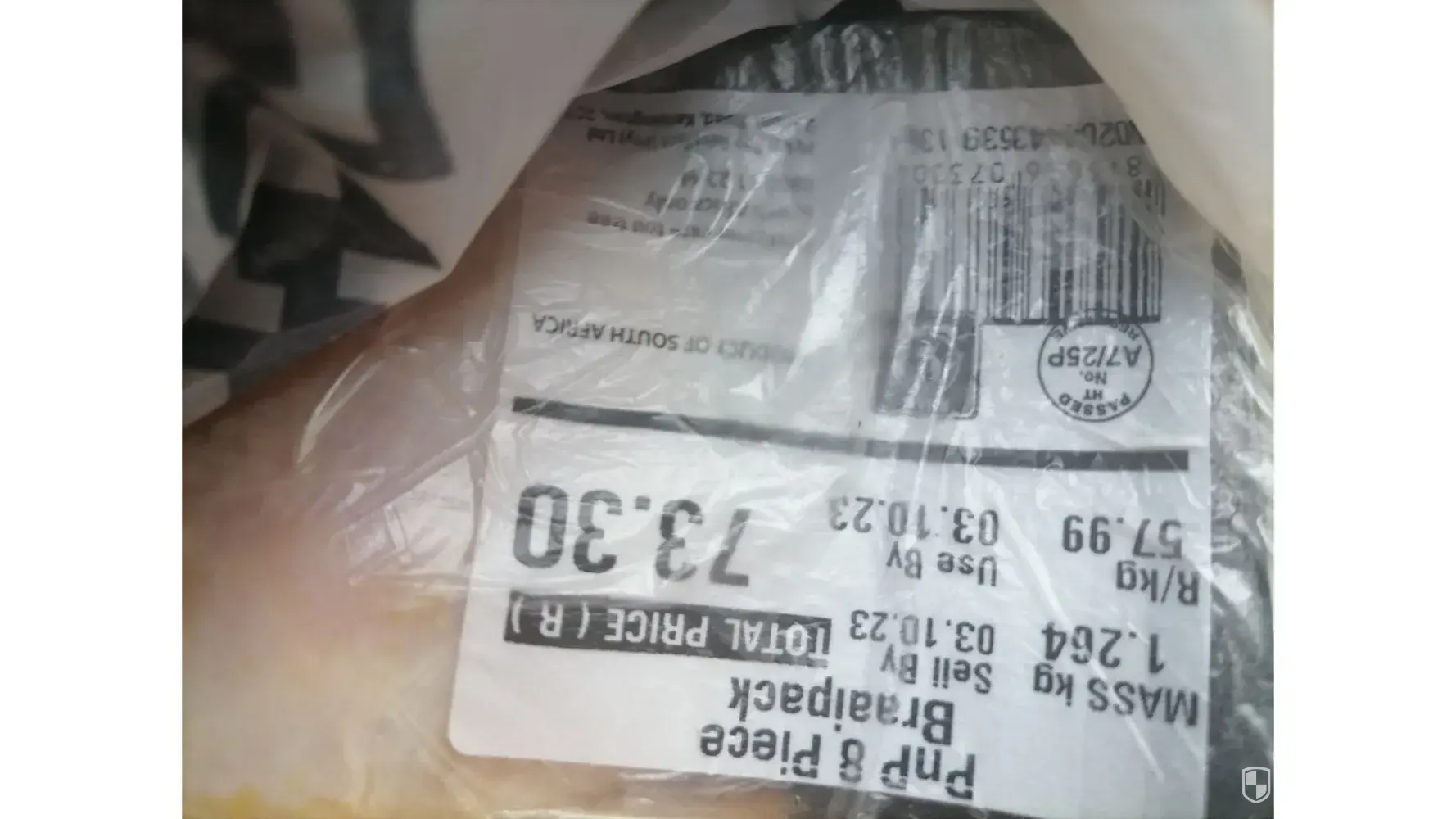 Good day on the 3th october 2023 at 17:05... I went shopping at pick n pay centre point milnerton bought eggs nd a 8 piece chicken braai pack on markdown for r59 a bargain though who wouldn't however myself nd family visiting the mall for the 1st time but we're more dissapointed never the less got to our department unpacked bags chicken were put in freezer...