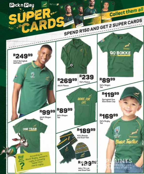 Pick n pay you advertise kids rugby t-shirts but NONE of your branches in Gauteng has stock. I have been phoning almost all the clothing branches in Gauteng and no one has stock? Why do you advertise then? I then phoned the Head office for Pick 'n pay clothing [protected] but after being placed on hold for 22 minutes i gave up. Very very dissapointed in pick n pay!