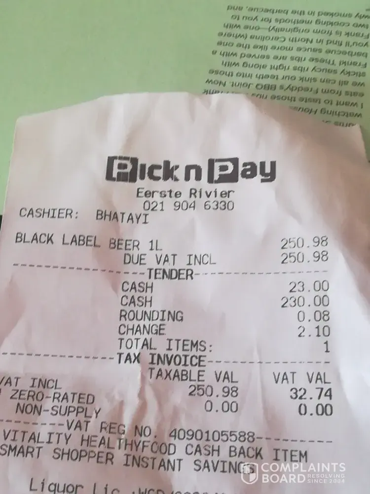 I will never shop again at Pick n Pay and I will be sure to let other people know.