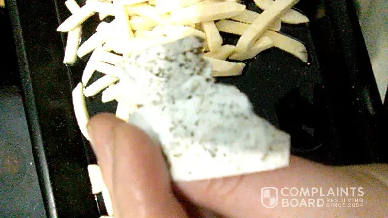 I bought PnP No Name brand straight cut fries during end September / beginning of October from Pick n Pay Heidelberg (Victorian Center) where I always buy my monthly groceries. Last night I wanted to make fries, and when I emptied the bag into the oven pan, a dirty sticker/label came out of the bag with the chips. It was dirty so seemed like it was on the floor before it landed in the sealed bag of chips? I was appalled and had to throw away the fries as I could not risk my family's health.