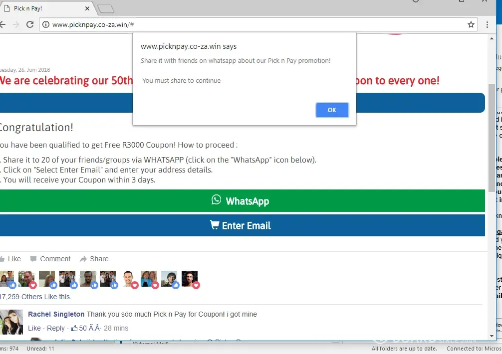 I followed the advert instructions to be elagible for the R3000 voucher. The option to share does not work and hence I cannot enter my mail address to claim the prize. See attached screen shot.