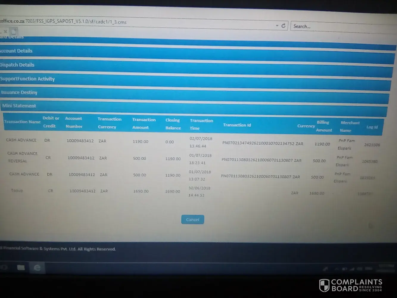 My mother used Pick n pay Elsburg in the East rand to withdraw R500 with her sassa card on 01/07/18 during the transaction the system apparently crashed so they couldn't give her any money. She was told to come back the following day 02/ 07/18. When she went back she found that the R 500 was missing from her R 1690 and it was now R 1190. She decided to withdraw the whole amount. My mom is 73 years old. After that she went back to check if the money had returned to the card from Sassa they told her it wasn't taken by them that they had given her the whole amount. They then advised her to go to the post office to check. When she got to the post office a screen grab of the transactions from her card showed that the R500 that went out on the 01/07/18 was reversed back to pick n pay Elsburg at 18:23 of the same day. So we went back with the screen capture to the shop and spoke to a lady named Analliese. She told us she couldn't help us that we should lodge a dispute with Postbank. So then I said I would call head office then she said I must ONLY call the Cape Town one. Which is strange because this particular pick n pay is in Gauteng Johannesburg in the East rand. This has aggravated my elderly mother so much because she uses this money to buy medication and food. I have been a loyal customer for years at this pick n pay and this is clear theft of pension money. Something is not right here. I have proof the money went back to pick n pay and I want pick n pay to pay my mom's money back . The picture provided below was a screen grab from the post office proving that the money did indeed go back to pick n pay.