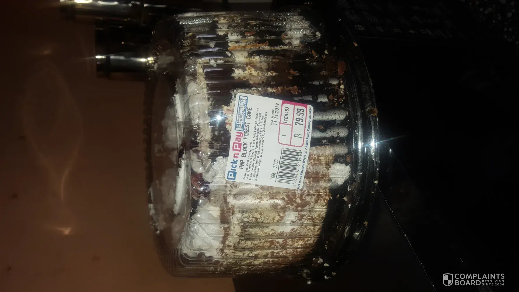 I bought a black forest cake at pick n pay in Tembisa (Rabasotho), The expiry date is the 11/11/2017, when I cut the cake it's not fresh and the cream to is not fresh, when I took a bite of the calendar i could feel egg shells.and I always buy black forest and it's always fresh but the one I bought now it's not fresh at all, even the cream is flakey.