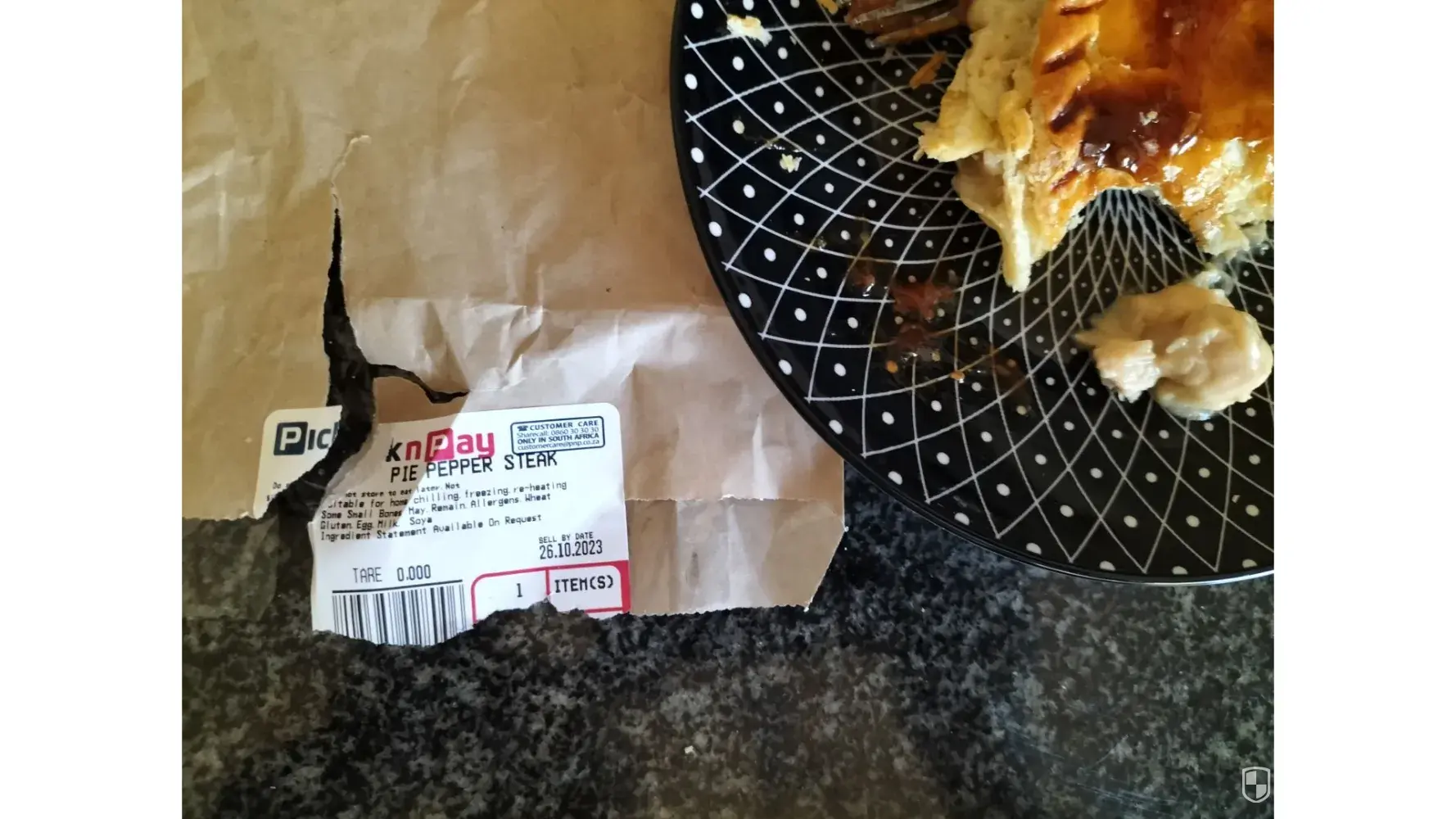 On 02 February 2023 on my lunch time after 12, I bought a chicken and mushroom pie from Pick n Pay in Howard Centre.
