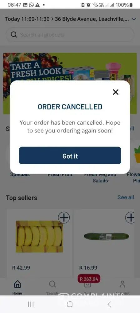Hi , I order beer yesterday at 13.30 on the pick n pay app , 14.30 the app said I received my order , I phone and said to them I didn't received it , they said my order I 1km away , I wait 3hours nothing , I phone and phone this morning for refund until now, nothing