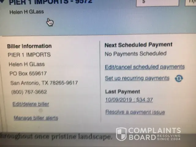 I got a Pier 1 credit card before the holidays it's now in the garbage ripped up and I called to close my account. 3 complaints is the magic number. Consider yourself lucky! There are much better stores who actually take care of their customers.