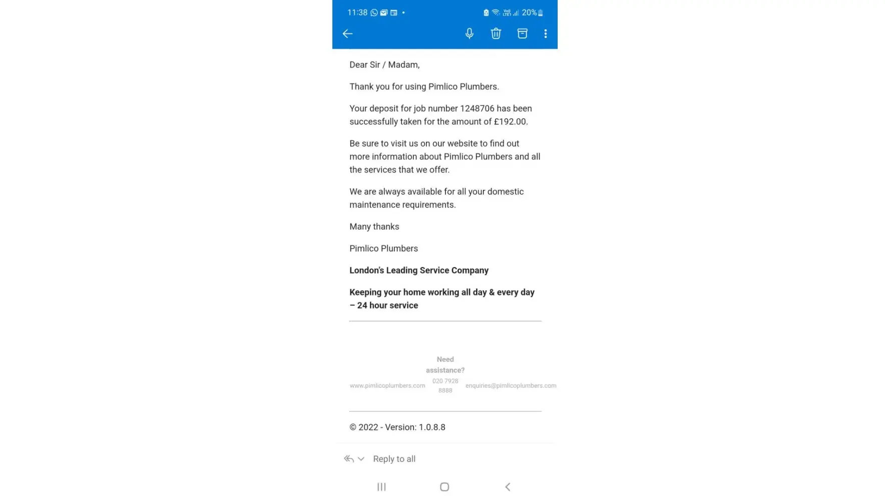 Should Pimlico Plumbers wish to contact me the job number was 820495.