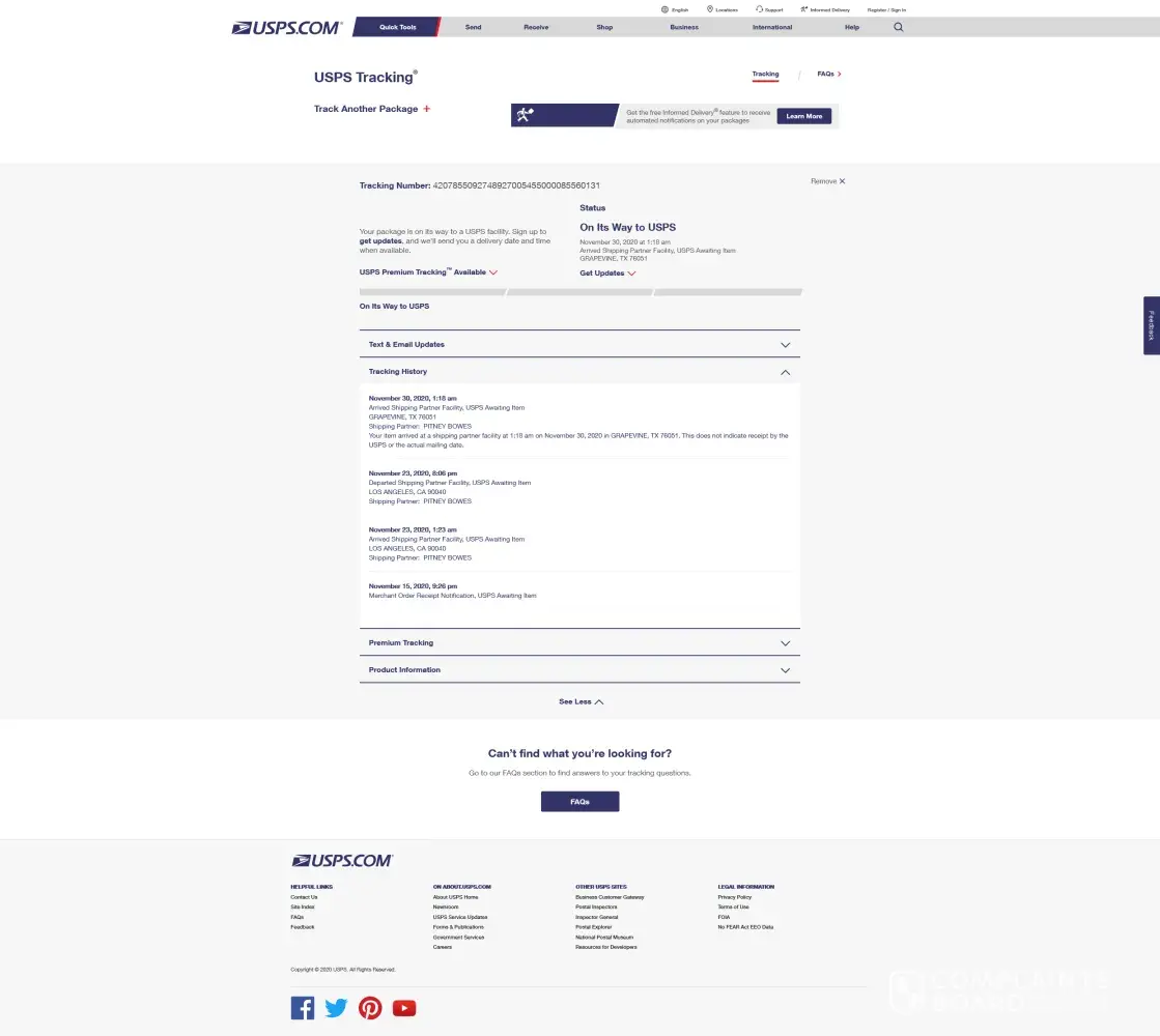 Read full complaintPackage tracking and delivery
