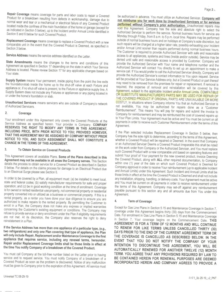 Recently I had your plumbing contractors out for a broken sewer line.. it was supposed covered on the agreement I have been paying on for years... first plumber said it covered under agreement and told me what they would do... second group came out and did the same... but they had to talk to boss... bait and switch tactics kick and he come back and said they don't cover the break...