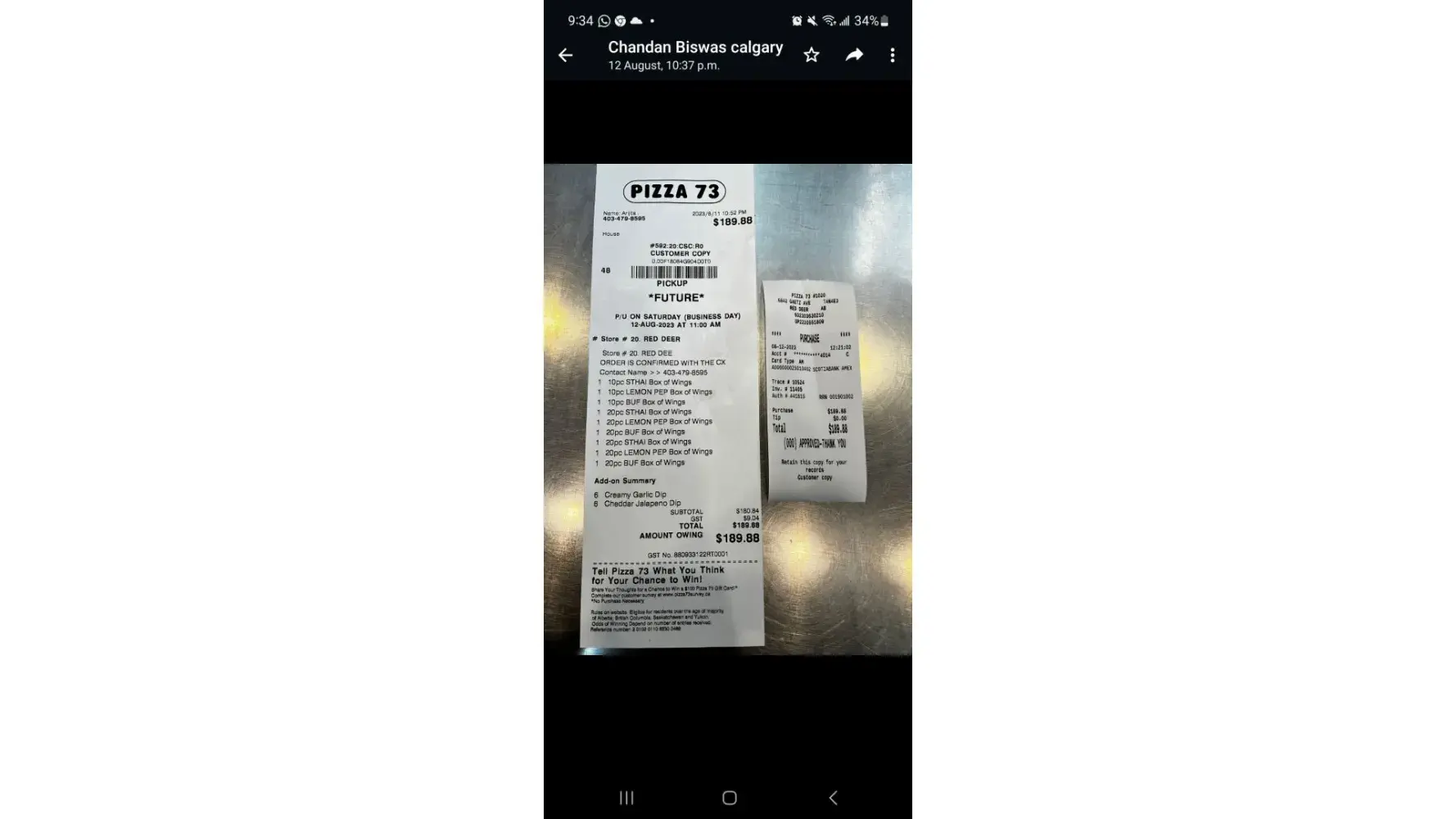 Claimed loss: We ate about half of the pizza and put the other half in the fridge normally we would have eaten the whole pizza and the wings tasted kind of funny with the garlic sauce considering they were hot wings so we only had about two each.