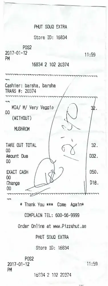 As per the receipt attached, I had gone to buy pizza from dubai silicon oasis new outlet of pizza hut, at 12 midnight, we were issued the receipt for one medium veg pizza and told that it will take 15-20 minutes. After 20 minutes when I returned to the counter for delivery, they told it will take some time, like this, it went on and on and we were handed over the pizza at 12:40 am.