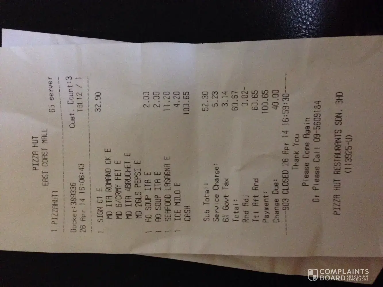Pd 26.04.2014 lbh krg jam 4 ptg, kami sekeluarga telah ke Pizza Hut Cawangan ECM Kuantan. Telah membuat tempahan secara set serta 3jns side order dengan pekerja pertama. 15minit kemudian br kami dpt sup&roti sdgkan air dpt 10 minit kemudian. Stlh tu br 1lg side order&pizza yg kami pesan sampai. Namun spagetti msh juga tdk dpt. Bila dtanya kpd pekerja kedua, beliau memaklumkan akan bertanya kpd yg berkenaan. Sehingga kesemua makanan yg kami terima td hbs d mkn, spagetti msh tdk dpt.. Kami bertanya kpd pekerja ketiga & dmaklumkan bhw spagetti berkenaan telah tiada. Bayangkan stlh hpir 40minit baru kami d maklumkan bhw spagetti berkenaan tiada. Sedangkan pekerja2 berkenaan sepatutnya blh maklumkan kpd pelanggan berkenaan sesuatu order itu [protected]@x...Setahu saya pekerja2 d restoran makanan segera ini akan dberi latihan (traning) sblm memulakan kerjaya mrk...adakah salah satu latihan yg dberi kpd mrk untuk tdk memaklumkan kpd customer & membiarkan customer menunggu dan trs menunggu?