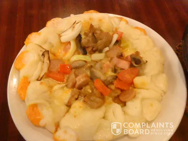 I need a proper explanation and a compensation for this filthy plain pizza served. Expecting a proper feedback regarding the same.