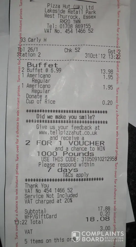 I had a meal in the Pizza Hut in lakeside retail park and when I went to pay my bill I notice that I had made a 20p donation for a cup of rice. Although I do not mind giving a donation that is not the point I was not asked and when I asked the manager she said that they have to put it on the bill it has come from head office, she said that itdoes state this will happen on the tables but for one thing I did not see it and the menues and all other paper work was removed from the tables when I ordered and then the bill was give me before I got my meal. I think this is out of order I should make the disition to give a donation not just added to my bill. also this is a practise in all Pizza Huts.