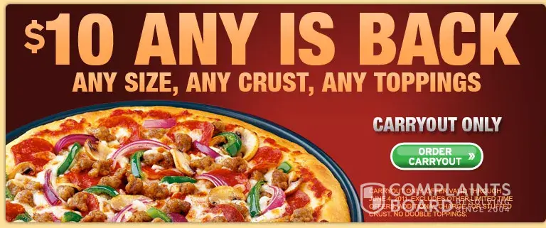I honestly have no idea how to start this, but I would just like to say that I think it's a load of bull that pizza hut advertises any pizza, any size, any crust, any toppings deal for ten dollars. But the stuffed crust is not included in this, you have to pay for extra cheese, and no double toppings. Okay, this is complete and utter bulls***! If you're going to say any to pizza, size, crust, and toppings, don't put in the fine print that it's extra for stuffed crust, extra cheese, and no double toppings. That's ridiculous and a lie! False advertising is against the law. I think something should be done about this because people are having to put out more money than they should have to.