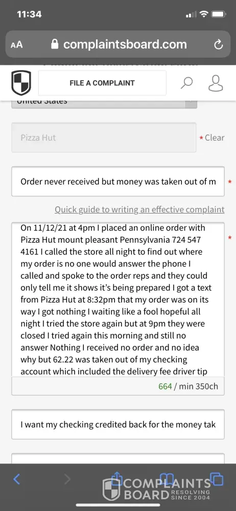 It took two min to take my money from my bank account, and three days of bull from pizza hut supervisor ty. Said I am out of luck, if I want to go to store, guess what? It's shut down I am disabled I reported to att y today. They said they will help me,