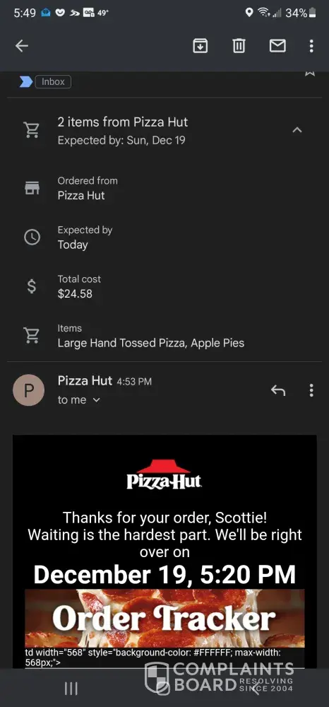 I ordered pizza Friday Dec 3, to be delivered, never got it. Your bogus call center took my order,