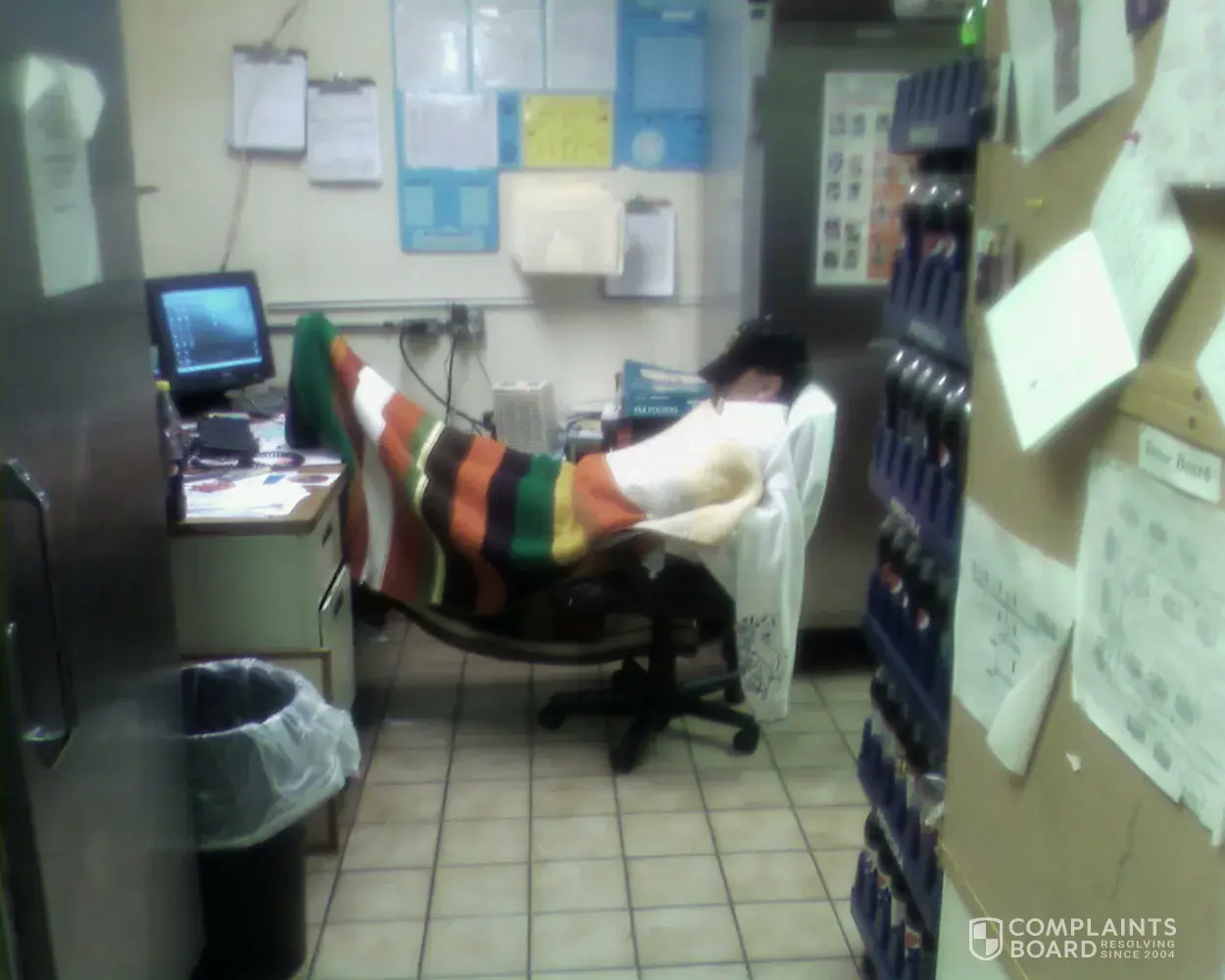 The store is dirty and understaff, manager does not care about customers and as you can see in the attached photo, likes to sleep in the store on the JOB!