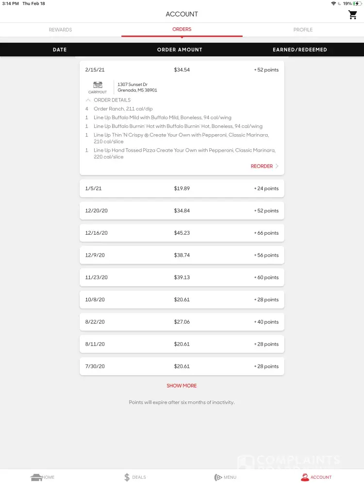 Read full complaintPizza and these alleged pizza hut rewards I can’t ever use.