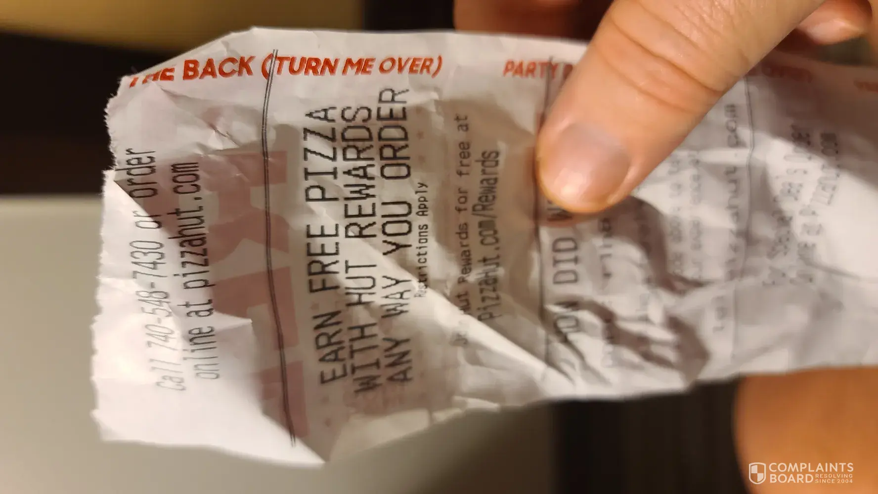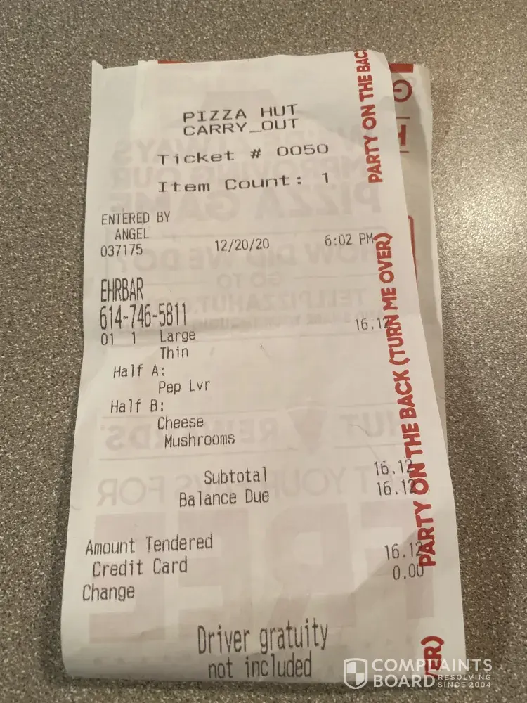 Read full complaintPizza order quality